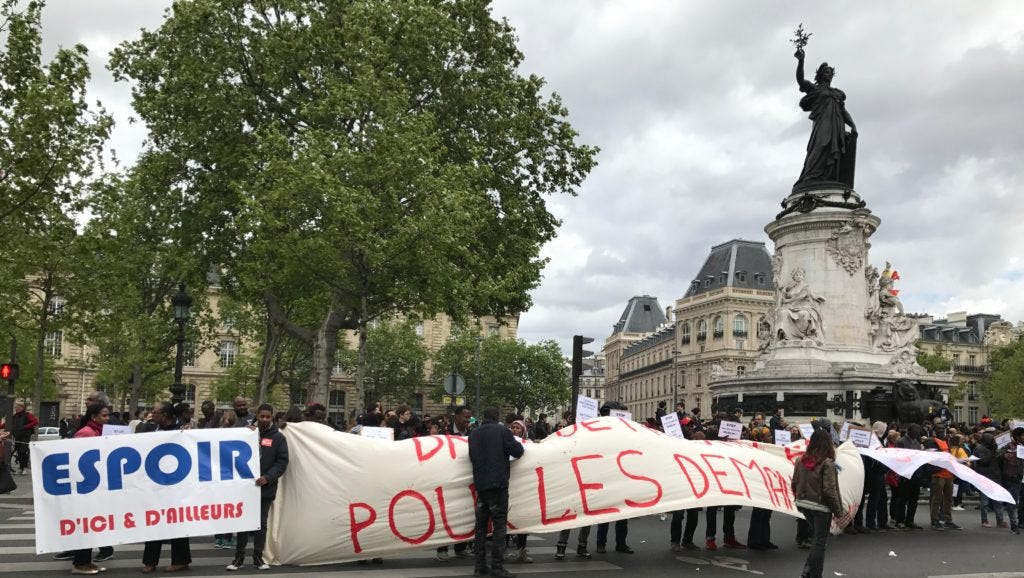 I never want to miss a party, so I went out to Place de la République this afternoon to see the sendoff of the third demonstration of the day.